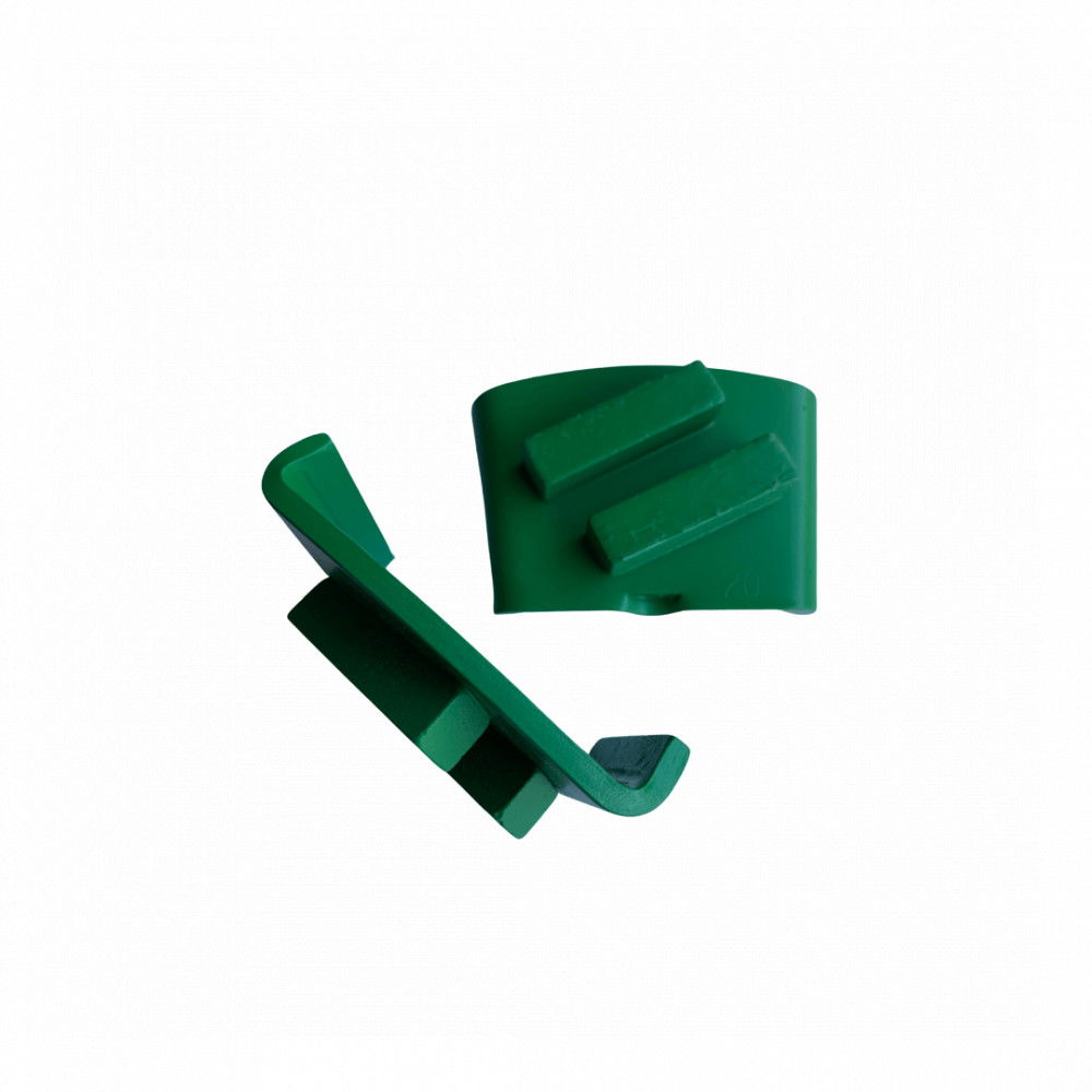 Felfogatás: Easy change system Szegmens hosszússág: 40mm Szegmens magasság: 10mm Szegmens szélesség: 10mm Felhasználási terület: padlócsiszológép. Rendelhető puha kötéssel kemény betonhoz, közepes kötéssel közepesen kemény betonhoz és kemény kötéssel lágy betonra. Gyémánt szemcseméret/grit 16/18-tól 120/140-ig rendelhető.